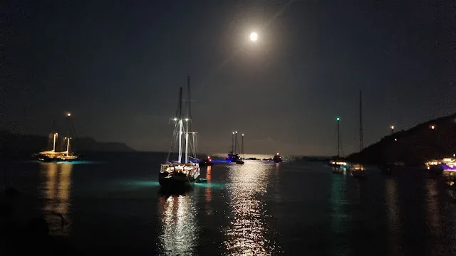 Güneş, Kos adasının arkasındaSaklambaç oynuyorAyın şavkı düşmüş sulara,Karışıyor teknelerin ışıklarına,Oynaşıyorlar,Bir sağa bir sola.Renkler turkuazdan griye dönüyorBiraz yeşil, biraz da sarıSanki…